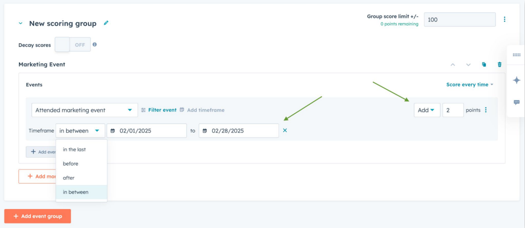 Bij het verfijnen van leadscores kun je vanaf nu prioriteit geven aan recente acties, zoals het invullen van een formulier. Hierdoor reageert je scoremodel beter op de huidige activiteiten van een lead. Dit versterkt de besluitvorming van jouw teams.