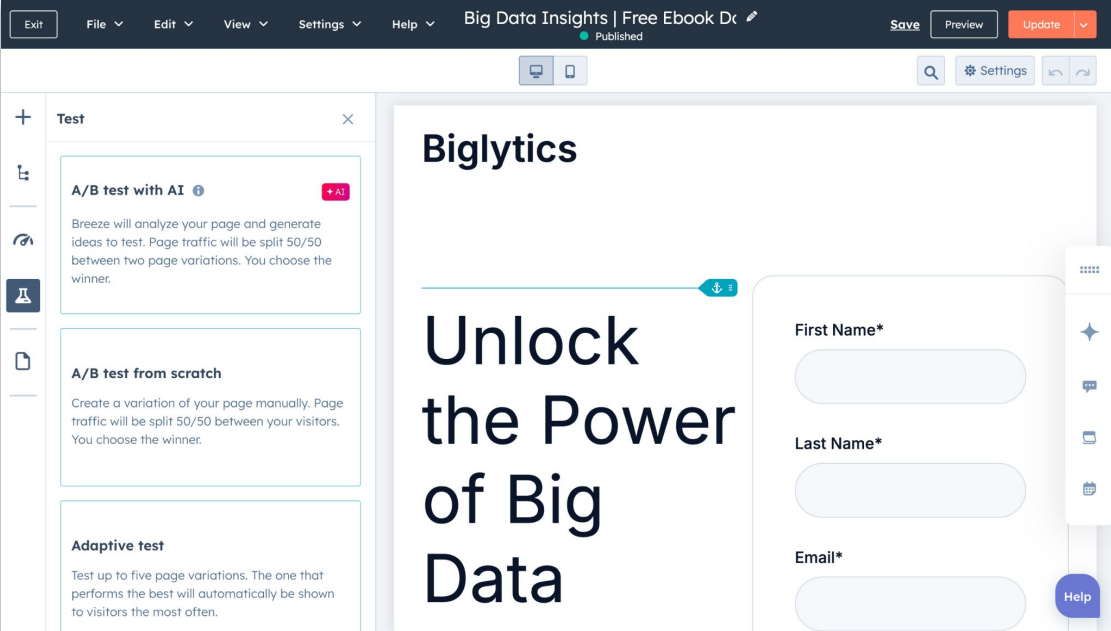 Gebruik AI om alternatieve koppen en teksten te genereren. Vervolgens kun je deze testen met een A/B test om te zien welke het beste presteert. Op basis van de data die hieruit komt kun je jouw landingspagina's optimaliseren.