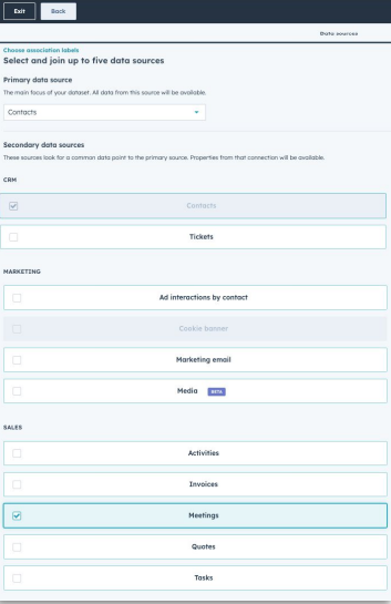 Gegevensbron voor vergaderingen in aangepaste rapportbouwer