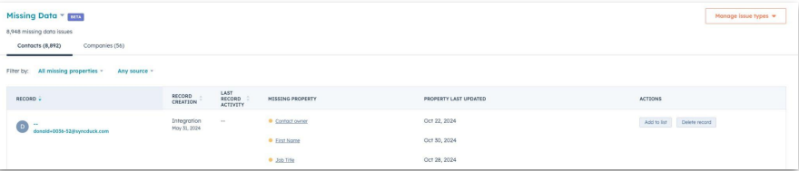 Spoor snel onvolledige records op, zoals ontbrekende e-mailadressen of telefoonnummers, en werk ze direct bij. Dankzij deze proactieve aanpak verbeter je de nauwkeurigheid van je data, wat zorgt voor betere klantbetrokkenheid en effectievere strategieën.